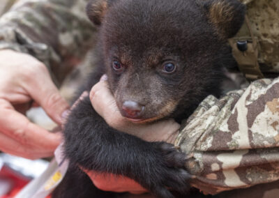 The Mississippi Department of Wildlife, Fisheries, and Parks (MDWFP) Black Bear Program recently rescued and rehomed an abandoned black bear cub from the South Delta to a new den in Wilkinson County and our board chairman was on the scene.